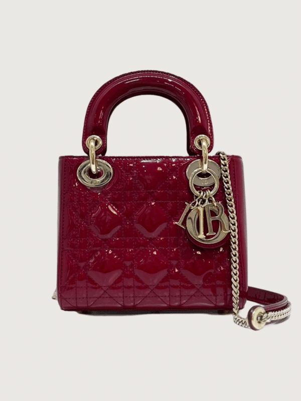 Lady Dior Mini Red Calfskin Patent Canage