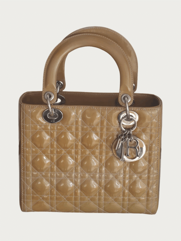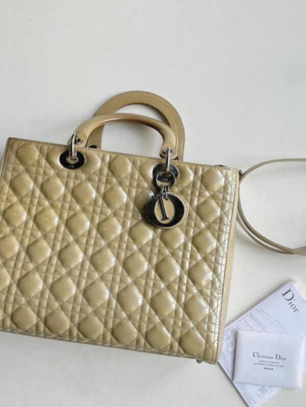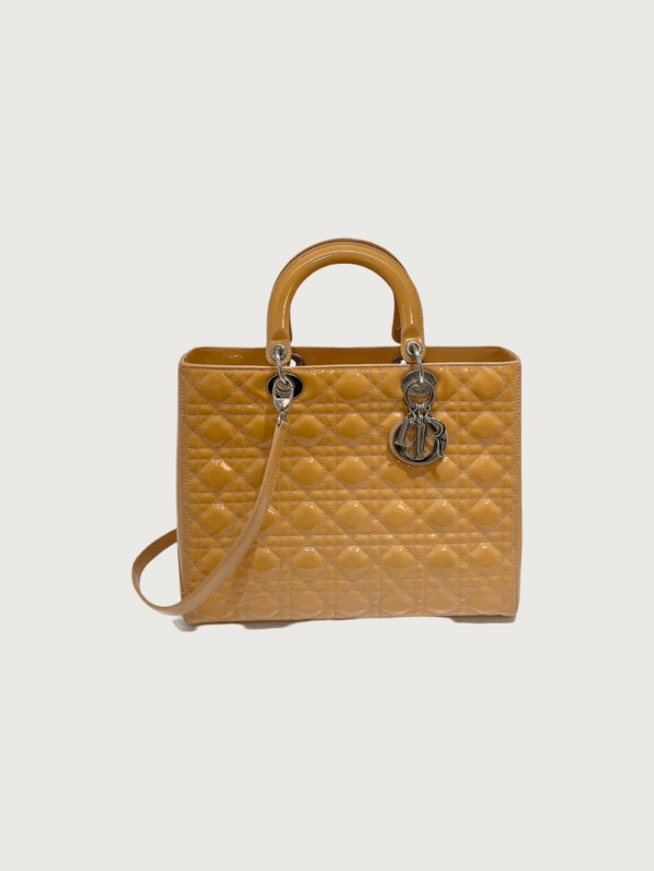 LADY DIOR LARGE BEIGE CALFSKIN PATENT CANNAGE