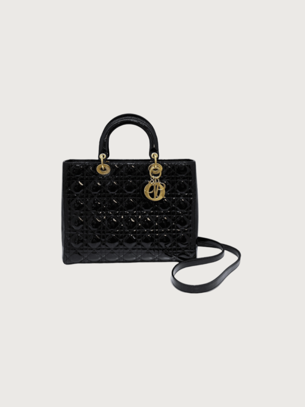 Lady Dior Large Black Patent Leather