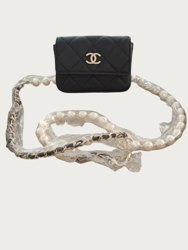 Chanel Lambskin Quilted Pearl Chain Belt Bag
