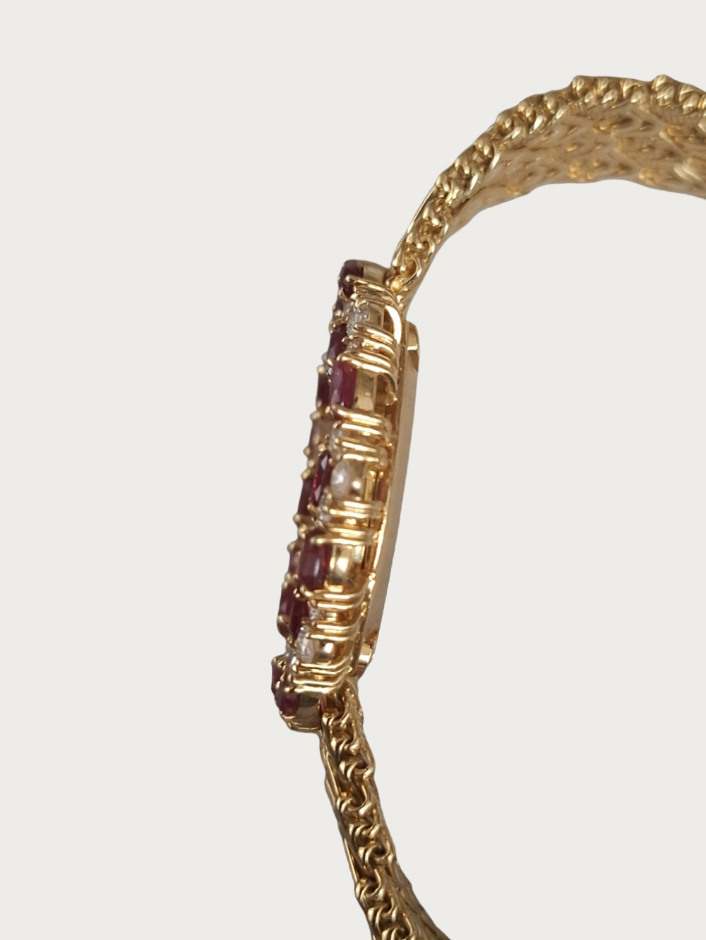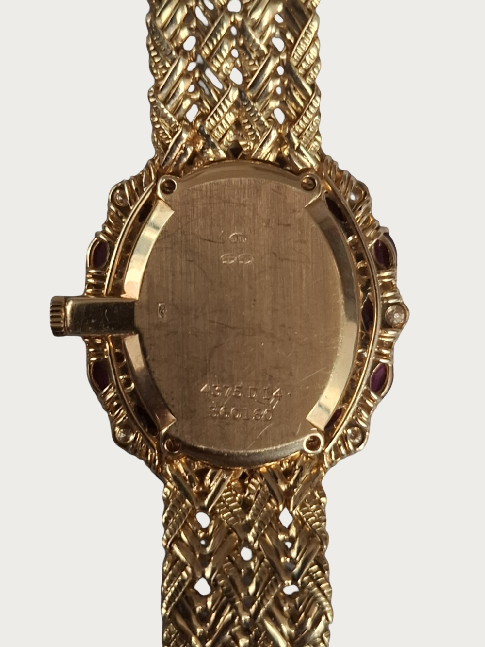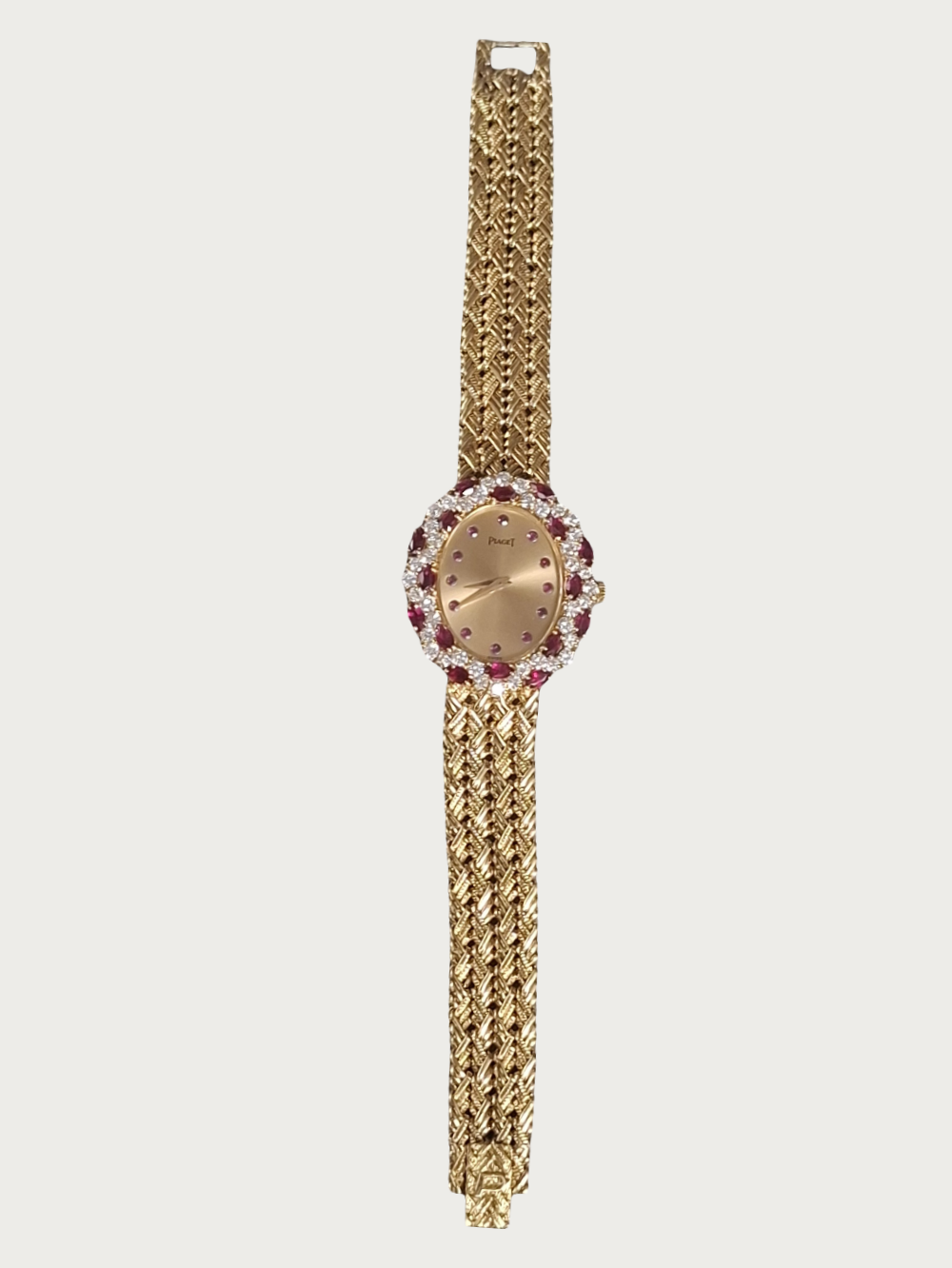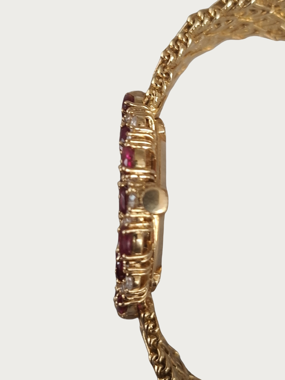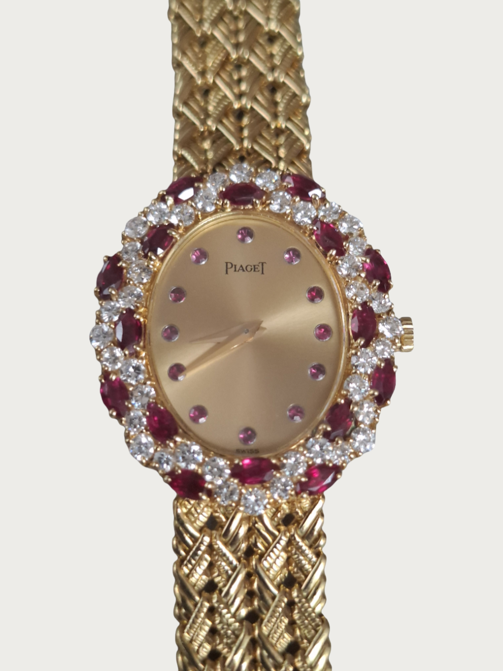 | Case | 18K Yellow Gold With Oval Bezel set With 16 Rubies And 40 Diamonds |